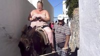 越來越多胖游客騎驢游希臘小島 毛驢不堪重負脊柱受損
