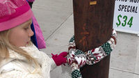 這場行動的發(fā)起人是加拿大女子塔拉·史密斯—阿特金斯8歲的女兒。那位有愛心的小姑娘在生日當天,和她的7位好友在寒風中將這些衣服綁在電線桿上,并附上溫馨紙條。