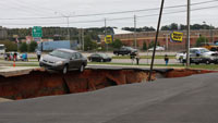 美國驚現183米長天坑 10多輛汽車被吞