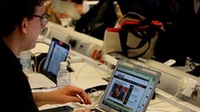 2018年6月12日,記者在新加坡的國(guó)際媒體中心觀看朝美領(lǐng)導(dǎo)人會(huì)晤的直播畫(huà)面。當(dāng)日,朝鮮最高領(lǐng)導(dǎo)人金正恩與美國(guó)總統(tǒng)特朗普在新加坡舉行會(huì)晤。