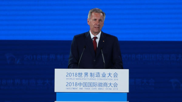 5月25日上午,由全球中小企業聯盟參與主辦的2018世界制造業大會在安徽合肥開幕。全球中小企業聯盟全球主席、德國前總統克里斯蒂安·武爾夫在致辭中說,世界制造業大會的永久會址有望落戶安徽, 安徽方面也表示將積極爭取大會永久落戶合肥。