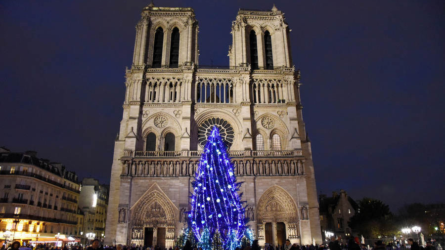 當地時間2017年12月9日,法國巴黎,法國高空扁帶極限運動員Nathan Paulin參加慈善挑戰活動,完成埃菲爾鐵塔和Trocadero廣場之間高空扁帶挑戰。