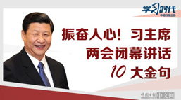3月20日上午,中共中央總書記、國家主席、中央軍委主席習(xí)近平在十三屆全國人大一次會議閉幕會上發(fā)表重要講話。“要幸福就要奮斗”、“沒有任何力量能夠阻擋中國人民實現(xiàn)夢想的步伐”、“人間自有公道在!”中國日報網(wǎng)帶你看十大金句!