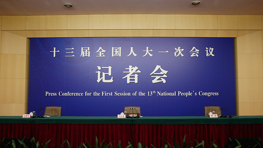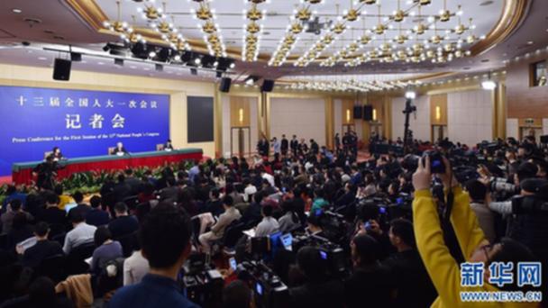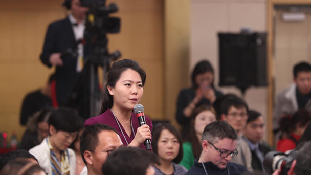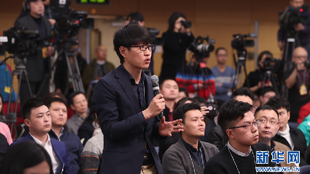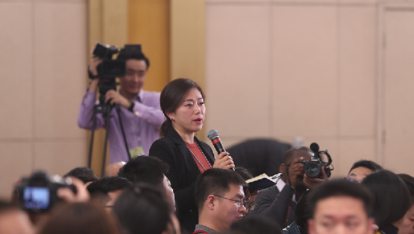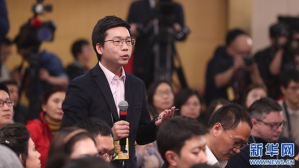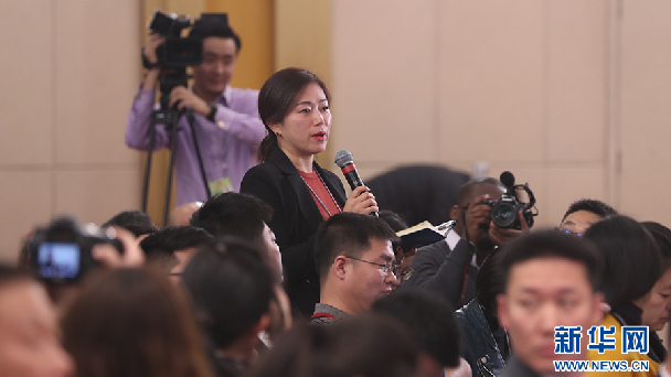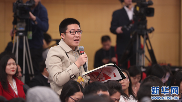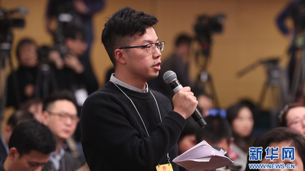 十三屆全國人大一次會議新聞中心于3月7日在梅地亞中心多功能廳舉行記者會,邀請國務(wù)院扶貧辦主任劉永富就“打好精準(zhǔn)脫貧攻堅戰(zhàn)”的相關(guān)問題回答中外記者的提問。圖為四川廣播電視臺記者提問。