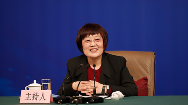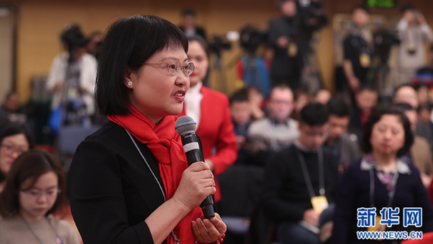 十三屆全國人大一次會議新聞中心于3月7日在梅地亞中心多功能廳舉行記者會,邀請扶貧辦主任劉永富就“打好精準(zhǔn)脫貧攻堅戰(zhàn)”的相關(guān)問題回答中外記者的提問。圖為記者會主持人王冬梅。