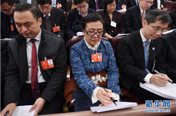 全國(guó)人大代表在認(rèn)真聽(tīng)會(huì)
