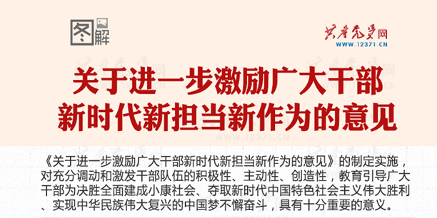 近日,中共中央辦公廳印發了《關于進一步激勵廣大干部新時代新擔當新作為的意見》,并發出通知,要求各地區各部門結合實際認真貫徹落實。