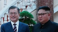 韓國總統(tǒng)文在寅9月18日早上抵達(dá)朝鮮首都平壤順安國際機(jī)場(chǎng),朝鮮最高領(lǐng)導(dǎo)人金正恩在機(jī)場(chǎng)迎接,隨后兩人同乘一輛車前往百花園國賓館。